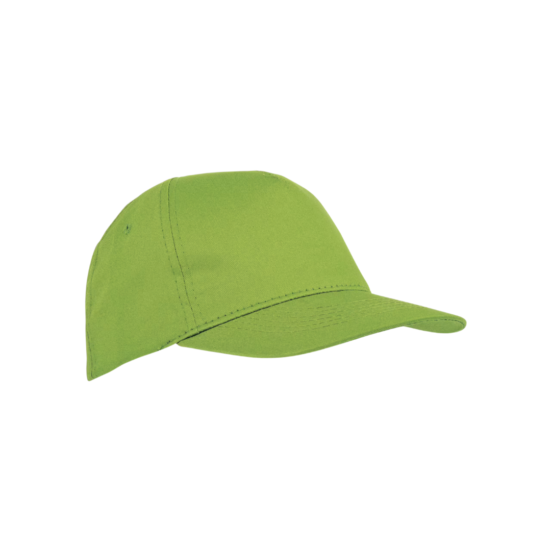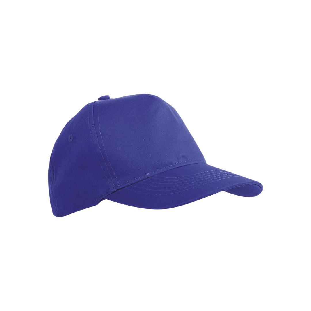 Cappellino in cotone, 5 pannelli con visiera di 2 mm di spessore e anellini ricamati con regolazione a velcro